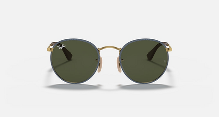 Emerge from the crowd with Ray-Ban Round Craft sunglasses. These round Sunglasses add edginess to the iconic retro look with genuine hand-stitched leather around circular crystal lenses and temple ends. The timeless look of the Round Craft RB3475Q was first made famous by legendary musicians and celebrated personalities from the 1960’s and has resurfaced as one of the most trendy and fashionable styles today. The unique detail and fine craftsmanship of the Ray-Ban Round Craft sunglasses makes this model a striking addition to the Icon family. Round Craft features a slim frame and lens shape that flatters those with small to medium faces and is available in Classic G15 green lenses, Classic B15 brown lenses and yellow Ambermatic lenses that are prescription friendly.
